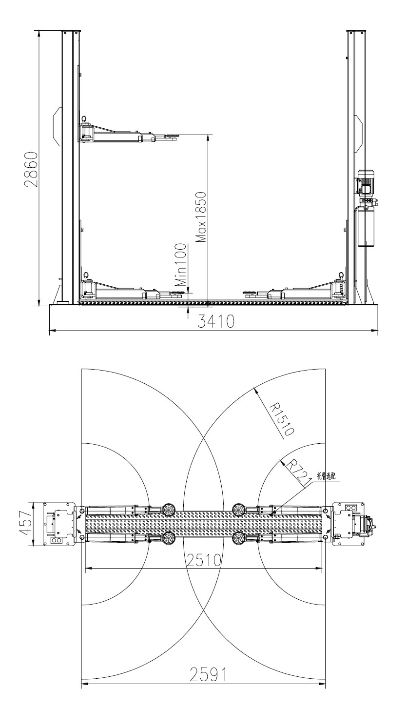বৈদ্যুতিক 2 পোস্ট কার লিফট প্রযুক্তিগত স্পেসিফিকেশন: