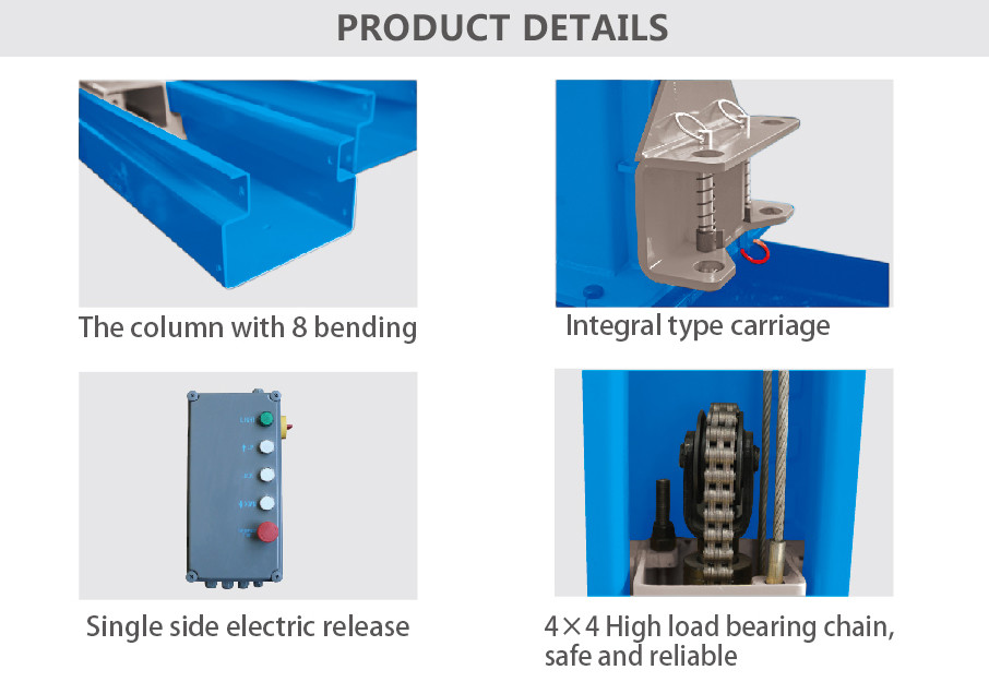 1) দুটি পোস্ট হাইড্রোলিক লিফটের সহজ অপারেশন, নিরাপত্তা এবং নির্ভরযোগ্যতার সুবিধা রয়েছে,