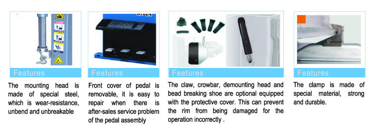 5) নখর, ক্রোবার, ডেমাউন্টিং হেড এবং পুঁতি ভাঙা জুতা protectiveচ্ছিকভাবে প্রতিরক্ষামূলক কভার দিয়ে সজ্জিত।এটি ভুলভাবে অপারেশনের জন্য রিমকে ক্ষতিগ্রস্ত হতে বাধা দিতে পারে।