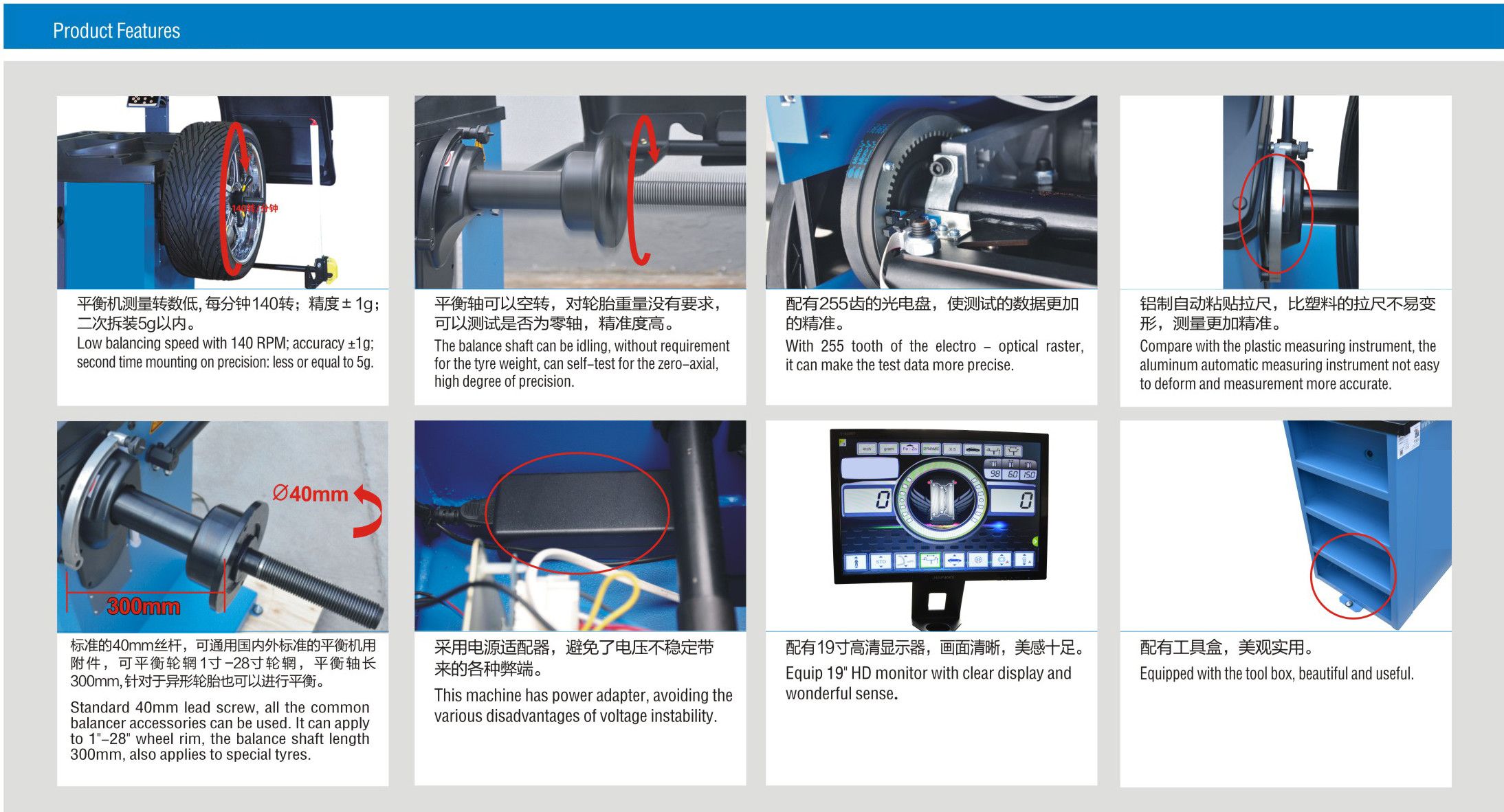 এলসিডি হুইল ব্যালেন্সার বৈশিষ্ট্য:
