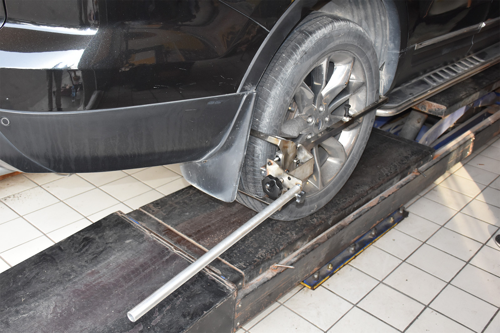 পায়ের আঙ্গুল পরিমাপ একটি সত্যিকারের 4-চাকার সারিবদ্ধতার জন্য গাড়ির কেন্দ্ররেখার সমান্তরাল